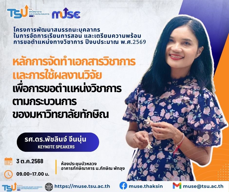 คณะสหวิทยาการและการประกอบการ จัดโครงการพัฒนาสมรรถนะบุคลากรในการจัดการเรียนการสอน และเตรียมความพร้อมการขอตำแหน่งทางวิชาการ ปีงบประมาณ พ.ศ.2569 สำหรับคณาจารย์คณะสหวิทยาการและการประกอบการ