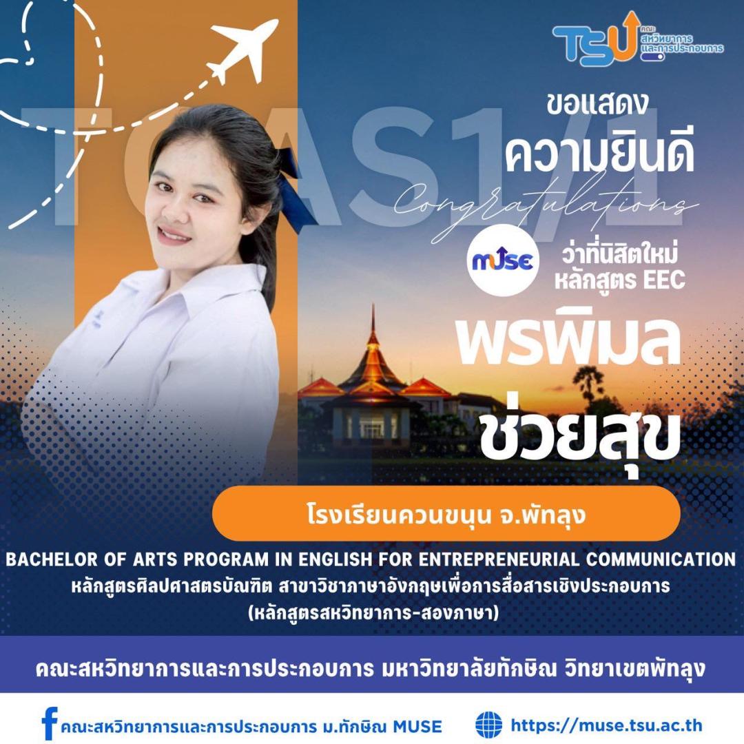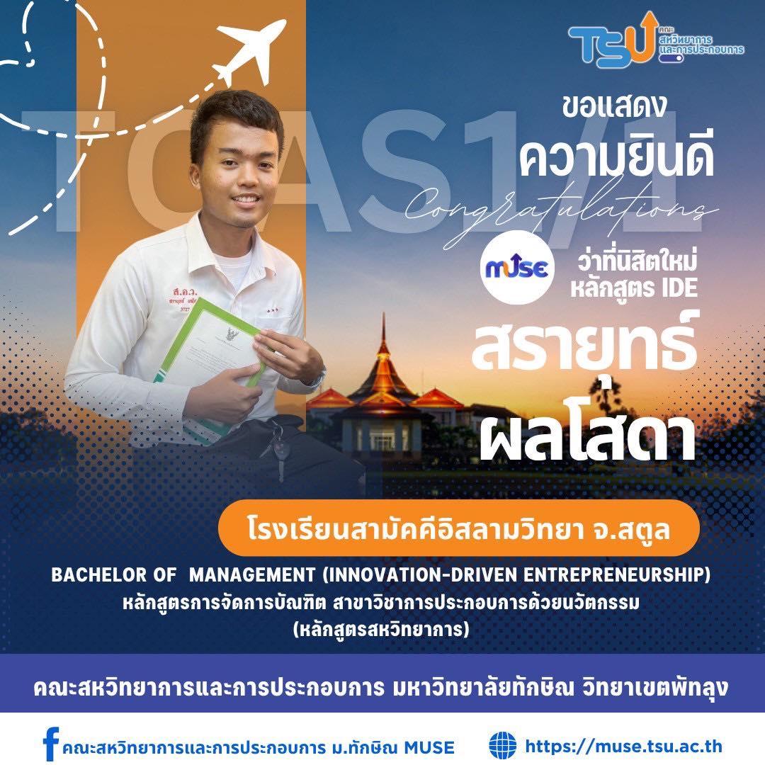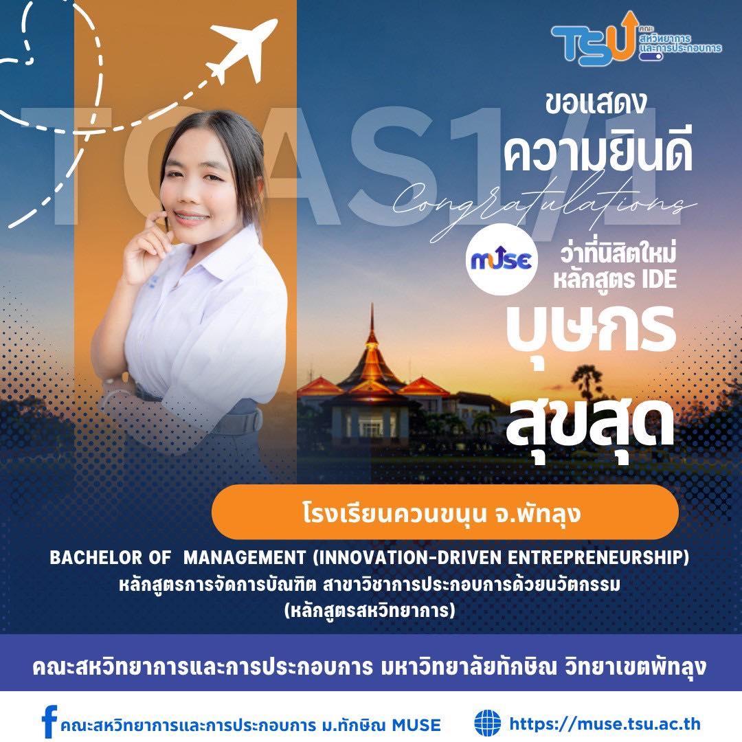 ขอแสดงความยินดีกับน้องๆ ที่ผ่านการคัดเลือกรอบ TCAS1/1 คณะสหวิทยาการและการประกอบการ มหาวิทยาลัยทักษิณ วิทยาเขตพัทลุง