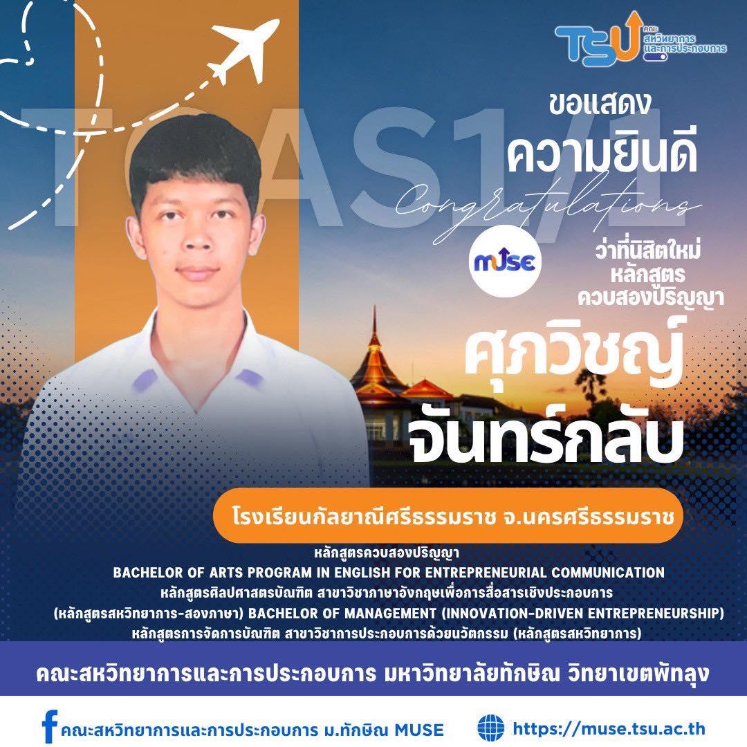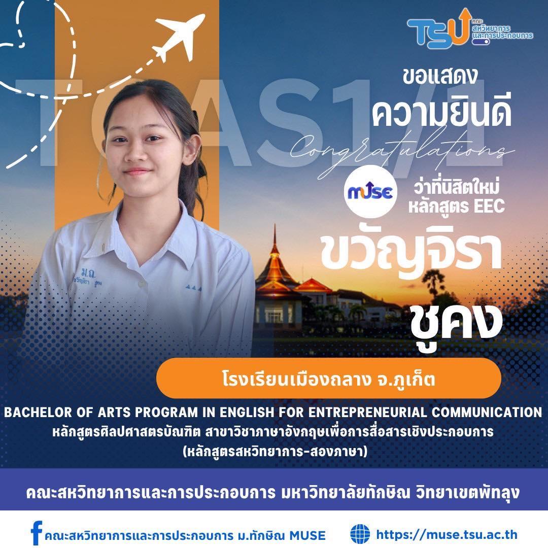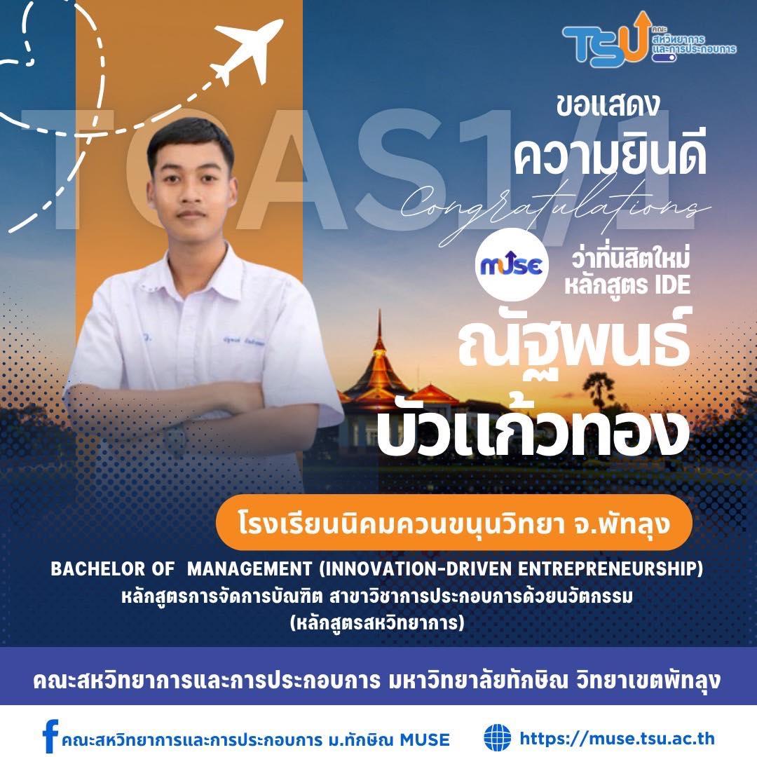 ขอแสดงความยินดีกับน้องๆ ที่ผ่านการคัดเลือกรอบ TCAS1/1 คณะสหวิทยาการและการประกอบการ มหาวิทยาลัยทักษิณ วิทยาเขตพัทลุง