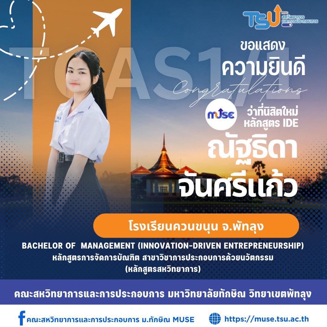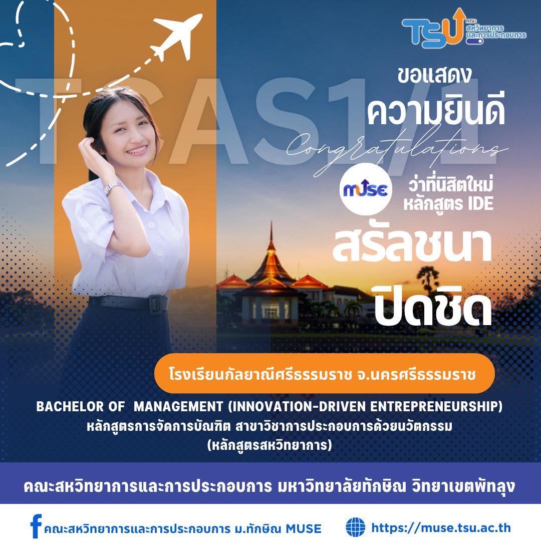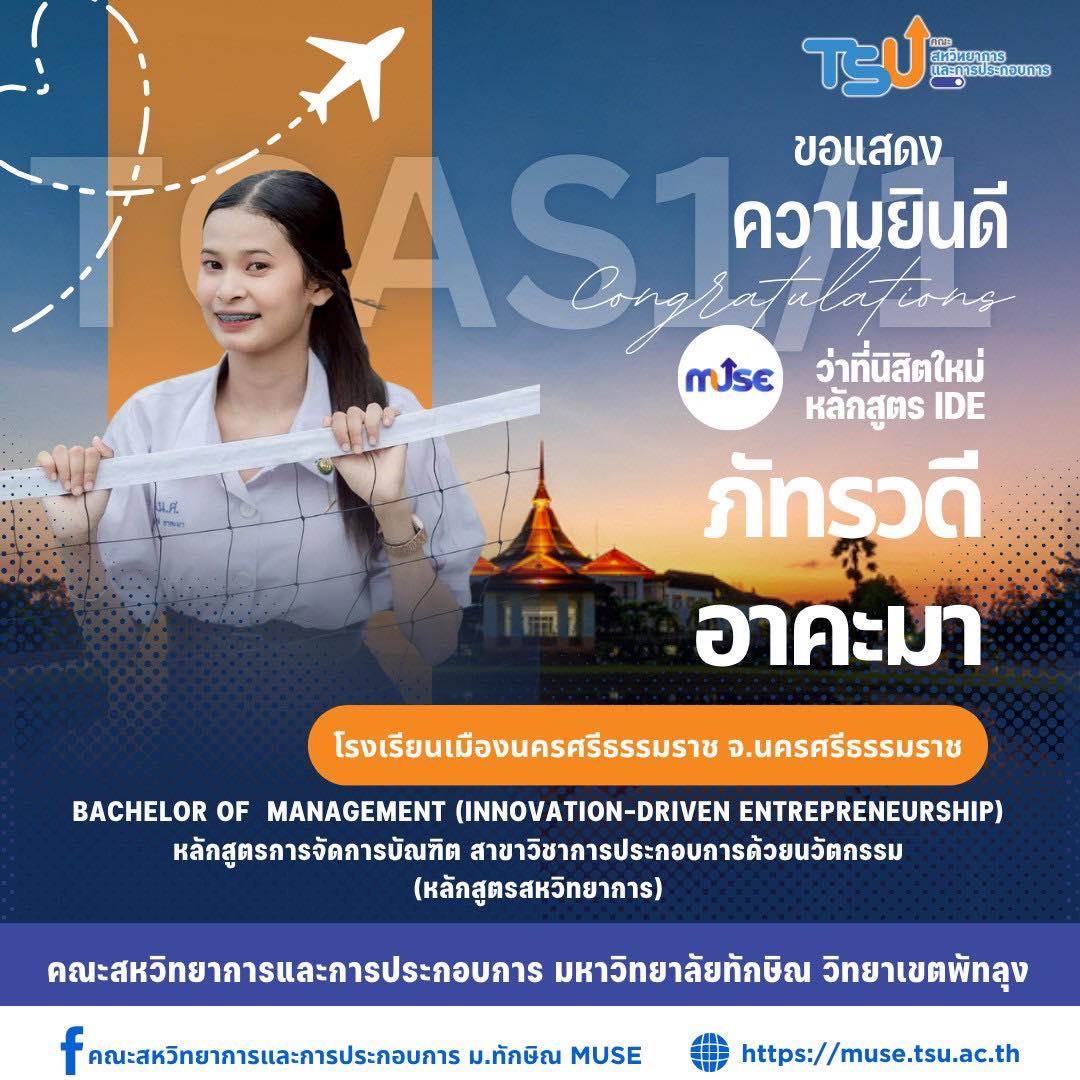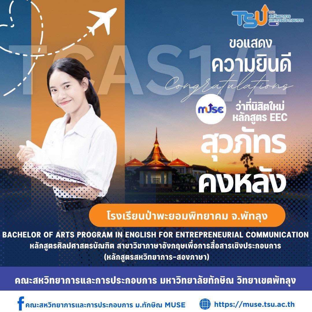 #มอทักรับรักน้องแล้ว ???? ขอแสดงความยินดีกับน้องๆ ที่ผ่านการคัดเลือกรอบ TCAS1/1 คณะสหวิทยาการและการประกอบการ มหาวิทยาลัยทักษิณ วิทยาเขตพัทลุง
