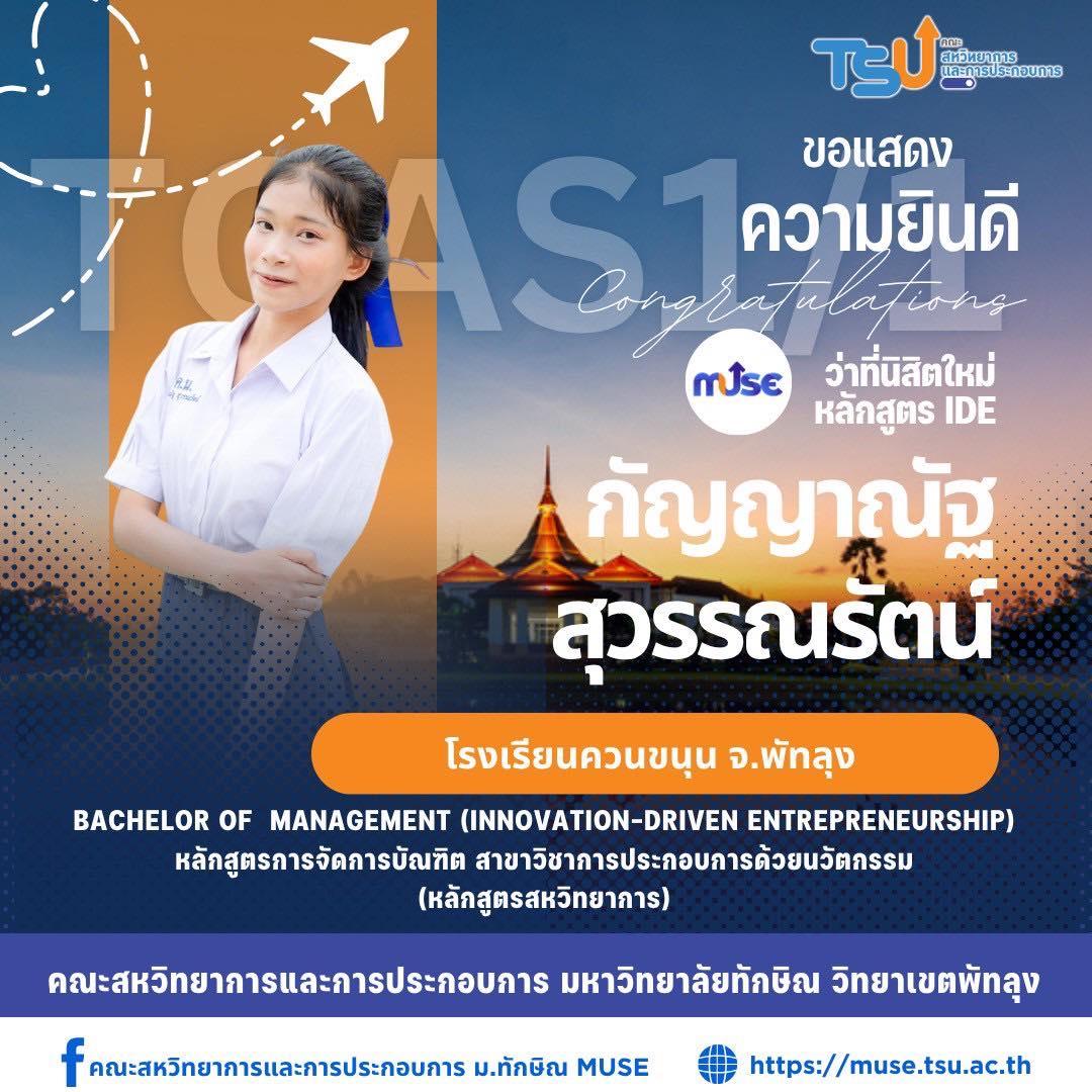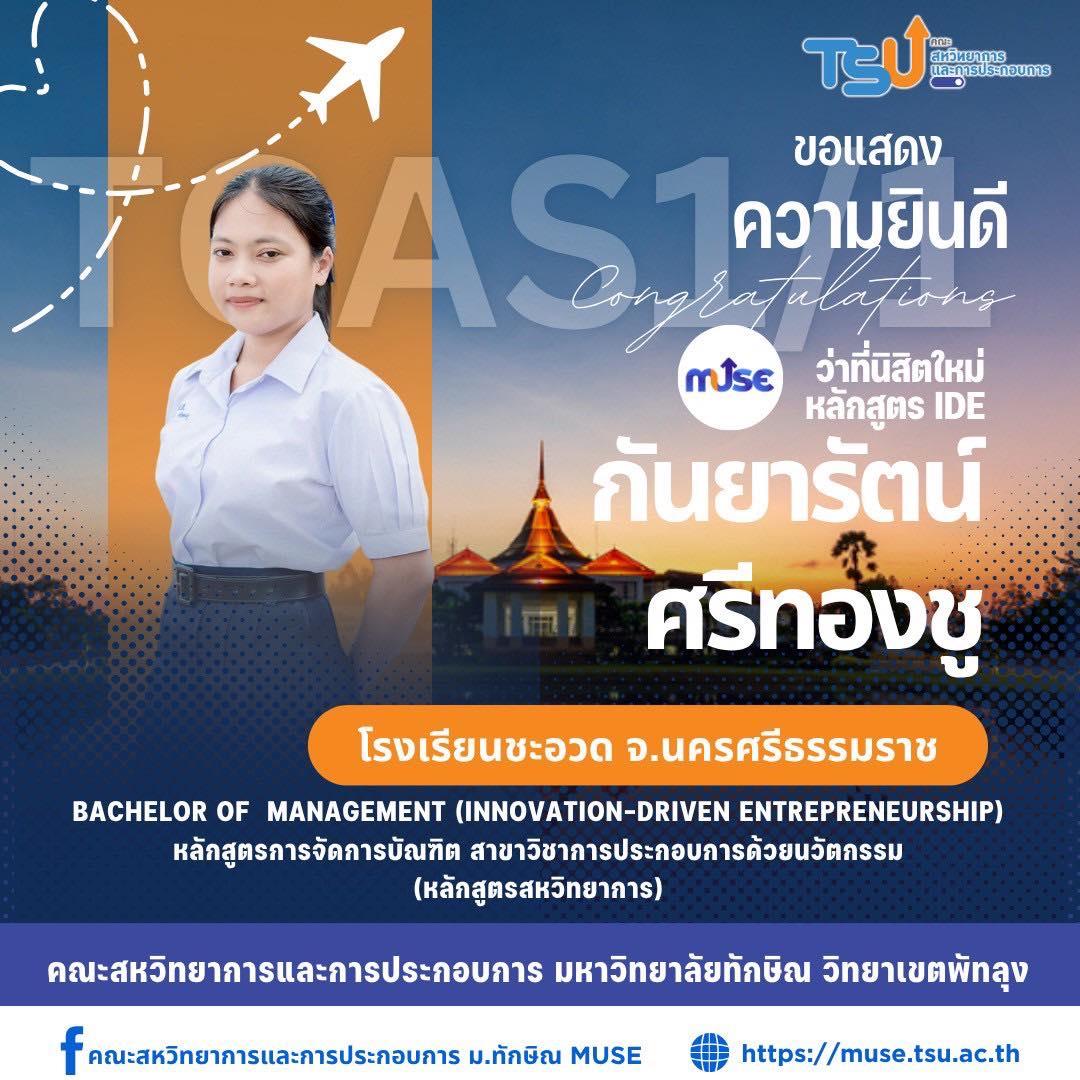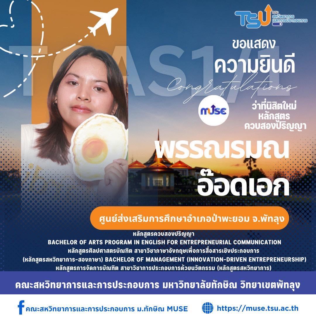 #มอทักรับรักน้องแล้ว ???? ขอแสดงความยินดีกับน้องๆ ที่ผ่านการคัดเลือกรอบ TCAS1/1 คณะสหวิทยาการและการประกอบการ มหาวิทยาลัยทักษิณ วิทยาเขตพัทลุง