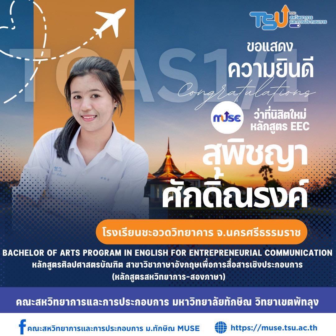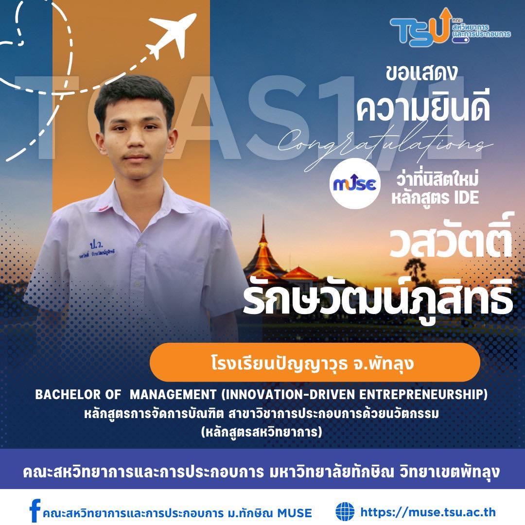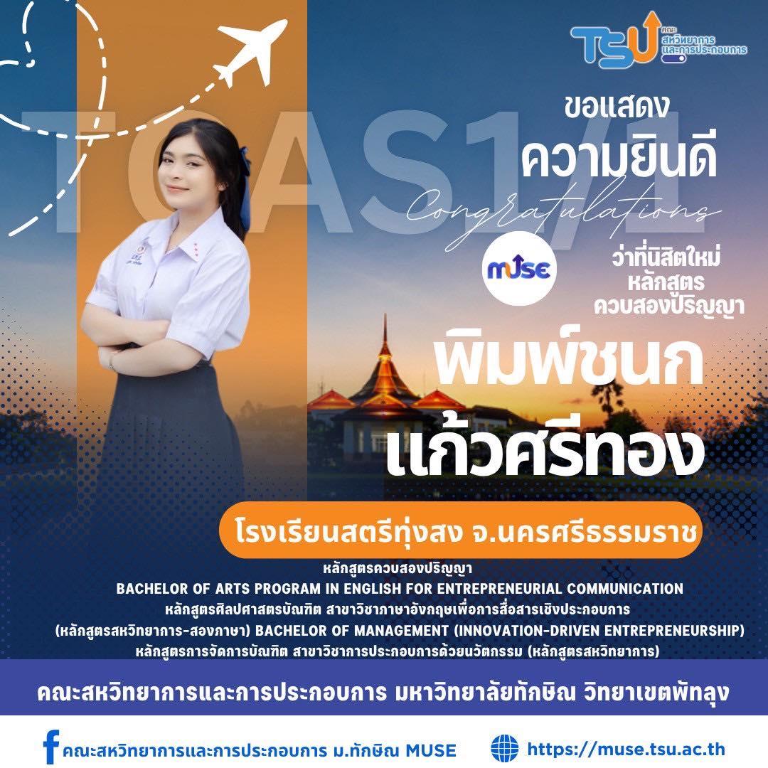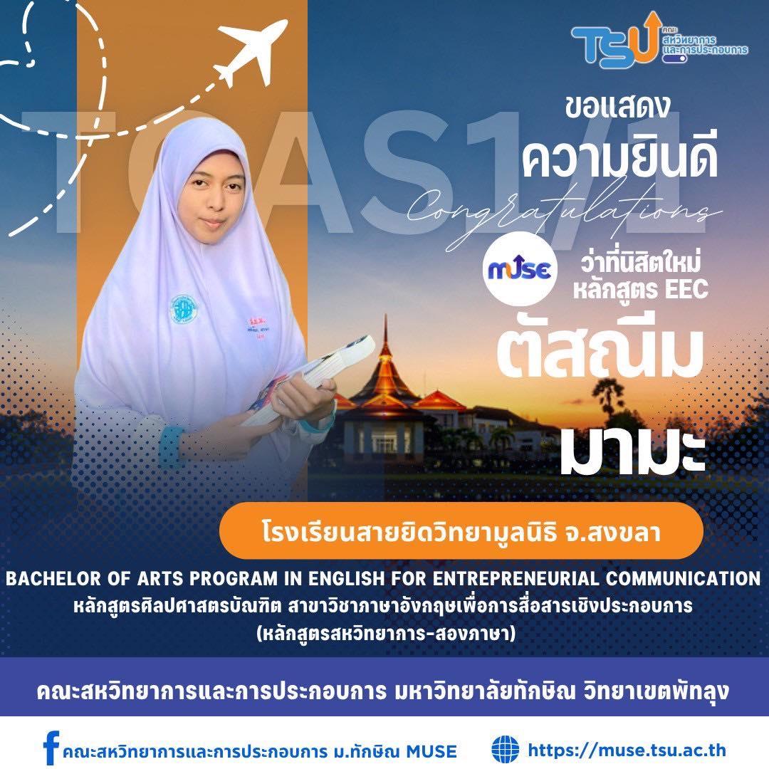 #มอทักรับรักน้องแล้ว ???? ขอแสดงความยินดีกับน้องๆ ที่ผ่านการคัดเลือกรอบ TCAS1/1 คณะสหวิทยาการและการประกอบการ มหาวิทยาลัยทักษิณ วิทยาเขตพัทลุง