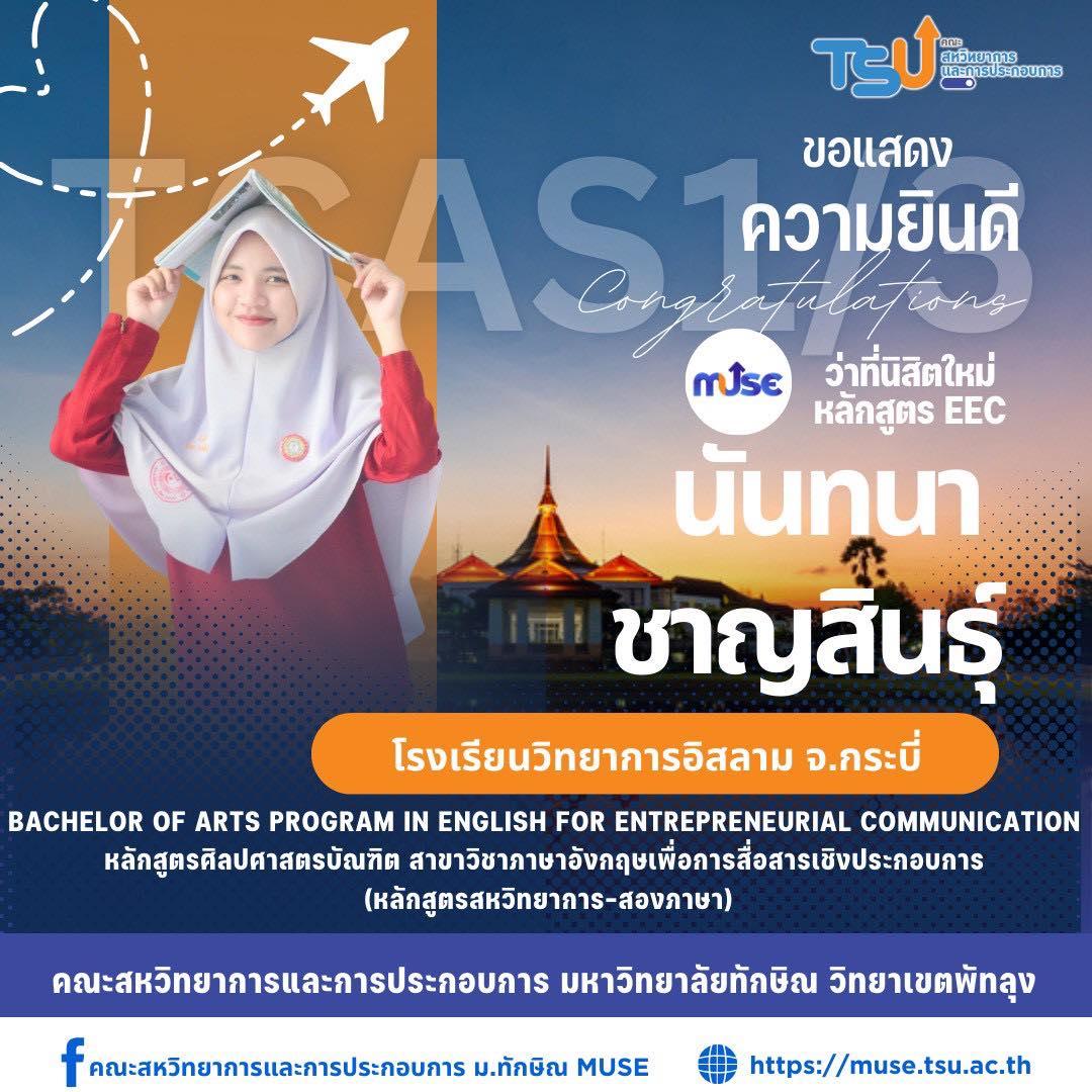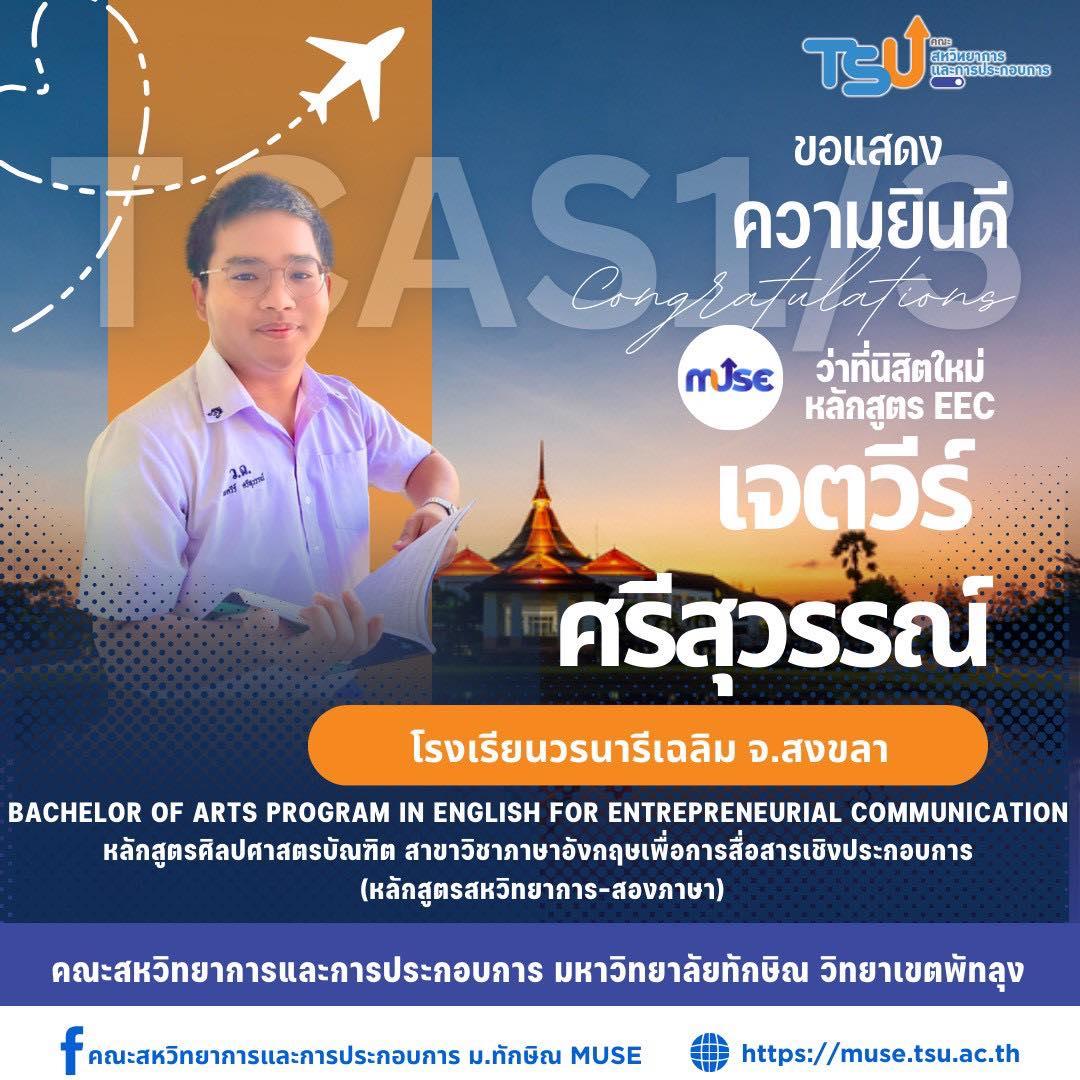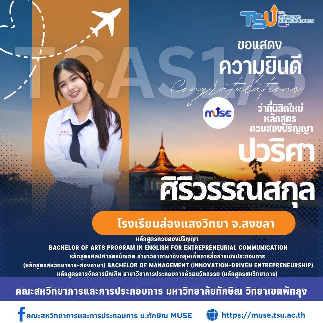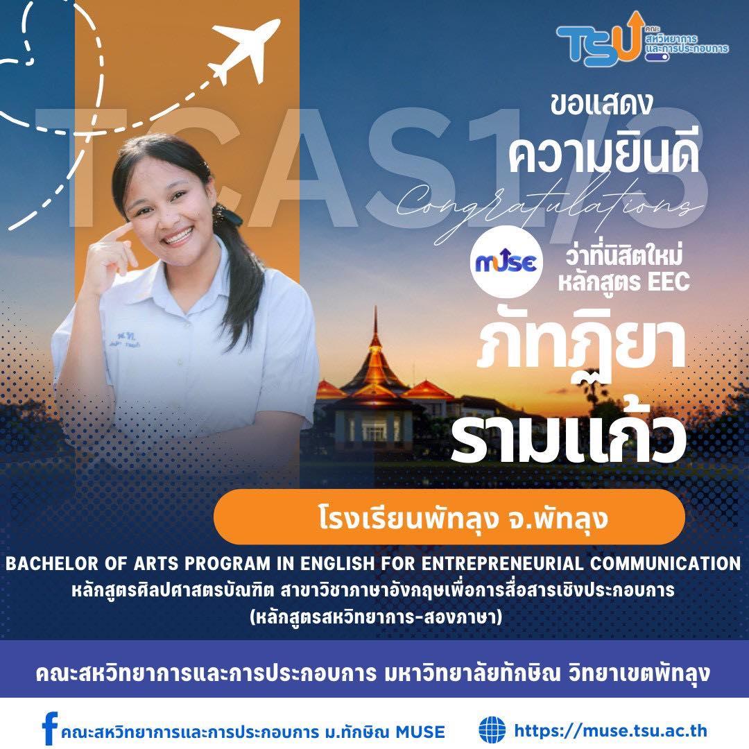ขอแสดงความยินดีกับน้องๆ ที่ผ่านการคัดเลือกรอบ TCAS1/3 คณะสหวิทยาการและการประกอบการ มหาวิทยาลัยทักษิณ วิทยาเขตพัทลุง