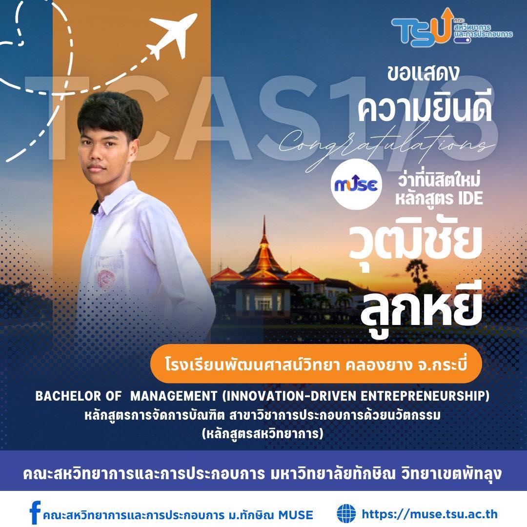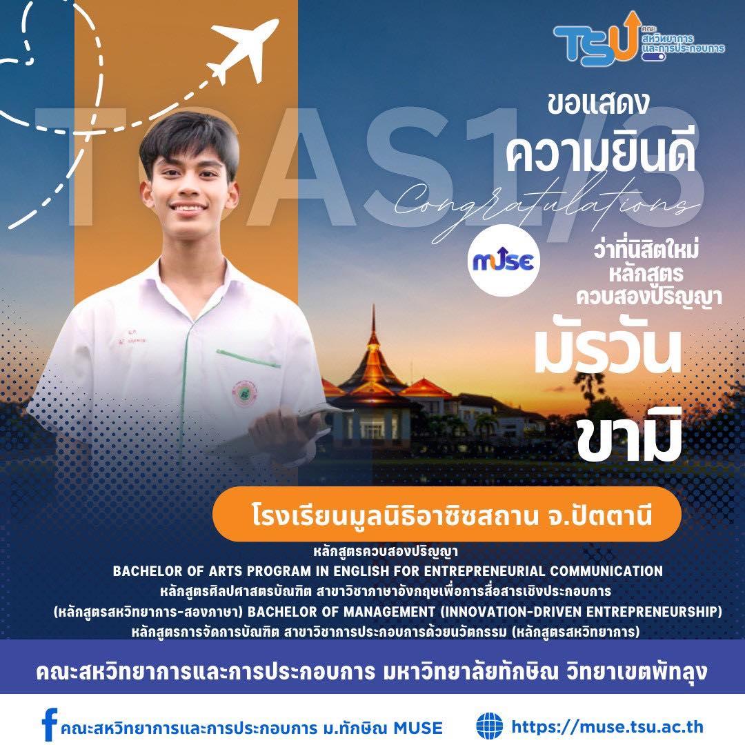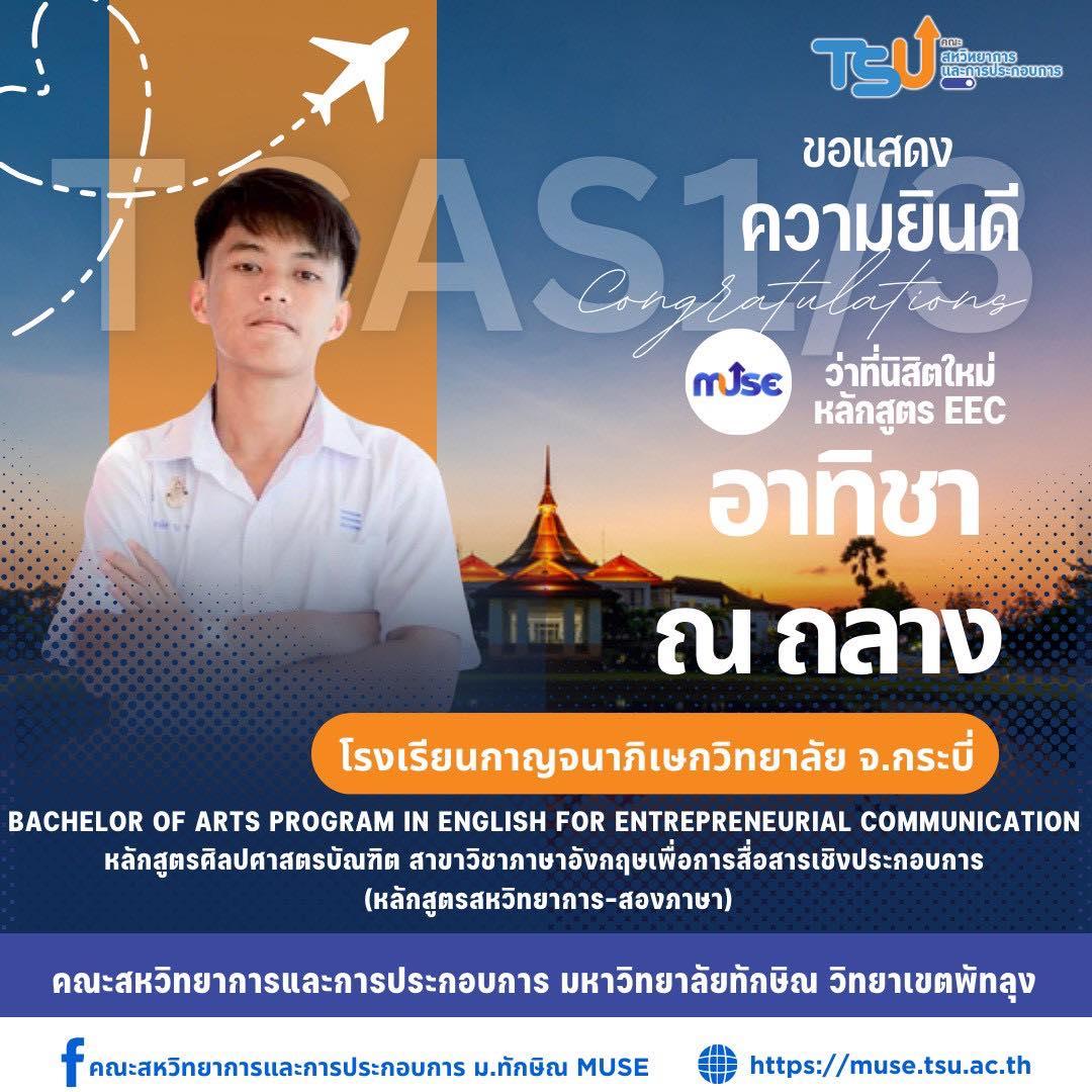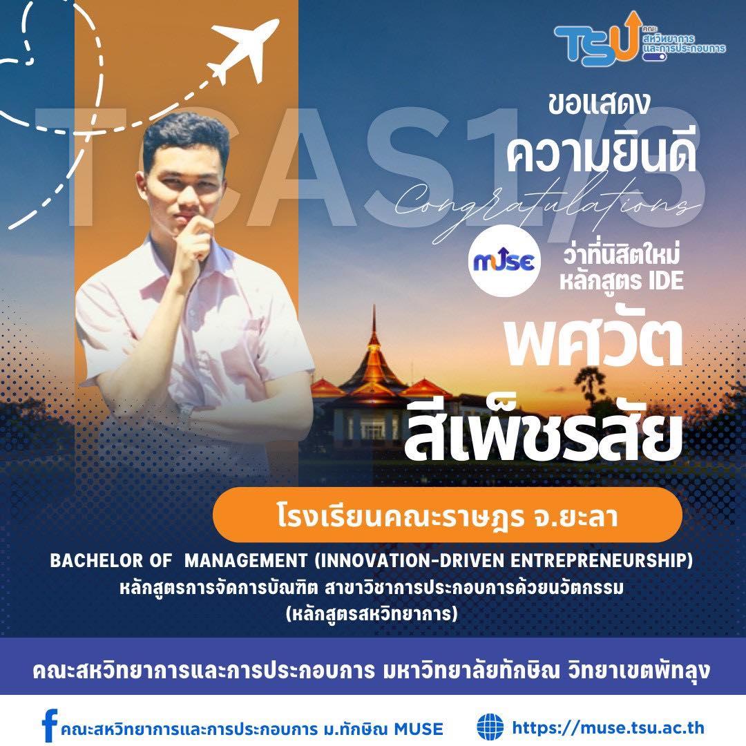 ขอแสดงความยินดีกับน้องๆ ที่ผ่านการคัดเลือกรอบ TCAS1/3 คณะสหวิทยาการและการประกอบการ มหาวิทยาลัยทักษิณ วิทยาเขตพัทลุง