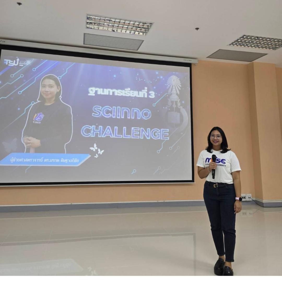 โดยในวันที่ 14 ธันวาคม 2568 ผู้ช่วยศาสตราจารย์ ดร.มรกต ดิษฐาอภิชัย รองคณบดีฝ่ายวิชาการและนวัตกรรมการศึกษา คณะสหวิทยาการและการประกอบการ ได้ร่วมเป็นวิทยากรในกิจกรรม "Sci inno challenge" โดยนำแนวคิดและเทคนิคเชิงปฏิบัติการมาเสริมสร้างทักษะที่จำเป็น